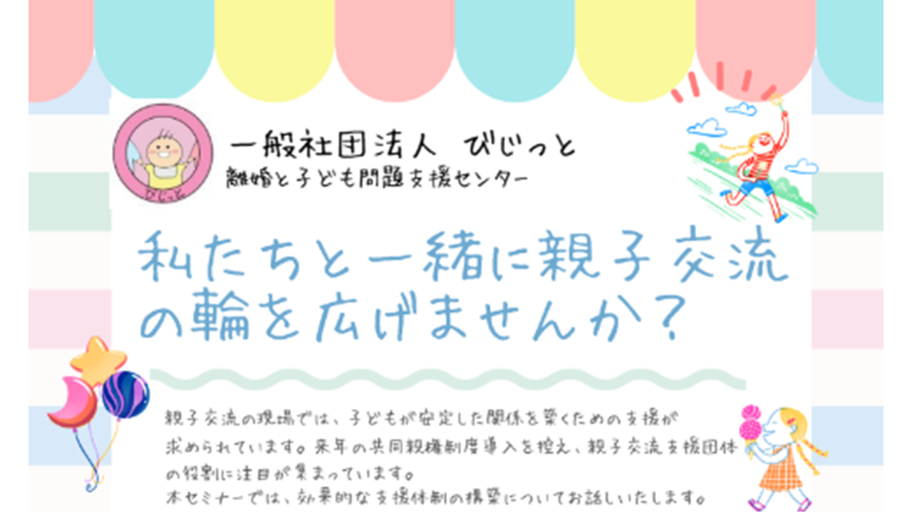 親子交流の現場では、子どもが安定した関係を築くための支援が求められています。来年の共同親権制度導入を控え、親子交流支援団体の役割に注目が集まっています。本セミナーでは、効果的な支援体制の構築についてお話しいたします。 < […]